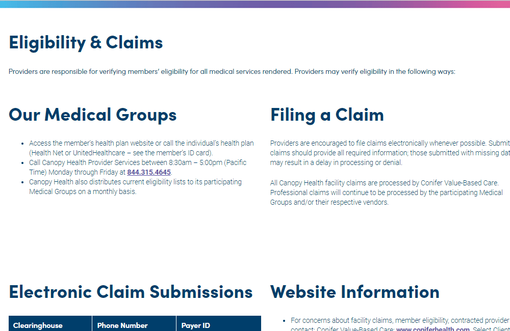 Important changes for our providers effective January 1, 2026. For more information click here. Eligibility Claims Policies Provider Manual Provider Contacts Service Area Provider Manual This provider manual provides comprehensive information about Canopy Health and how we can work together to meet the needs of your patients. If you have any questions, please contact the Canopy Health Network team. Download PDF Are you a provider and need a contact? See Contacts